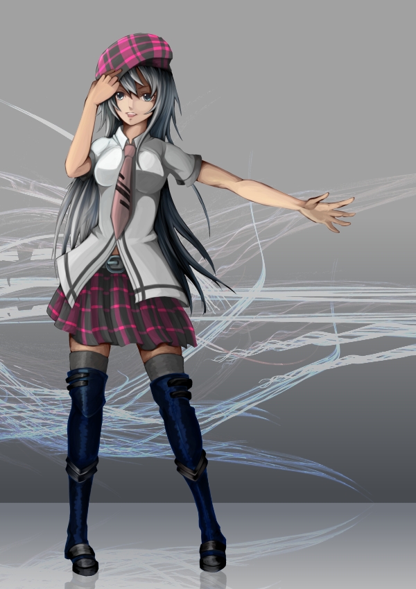 友人が考えた設定は、腰ぐらいまでの白髪、中乳、面倒見の良い子(18歳大学一年生)、お洒落ペレー帽装備、目の色は青との事でした。そこに私の私服でよく使う色(黒、刺し色が赤、ピンク)などを用いて女性らしい服装などをデザインしました。3DCGなどと連携できないか試みた作品でもあります。